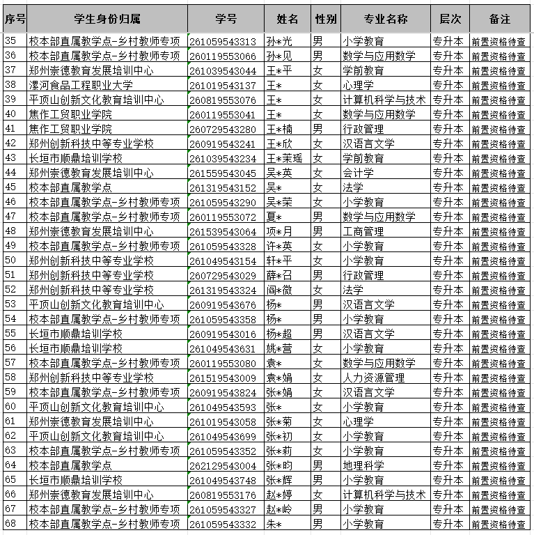 需进行前置学历清查的2026级新生共计68名,具体名单详见附件1。