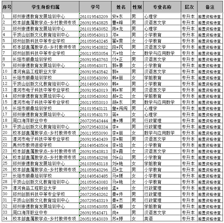 为确保我校高等学历继续教育2026级新生在学信网顺利完成学籍注册,现依据相关要求,对2026级前置学历资格待查生开展第一次学籍清查工作。